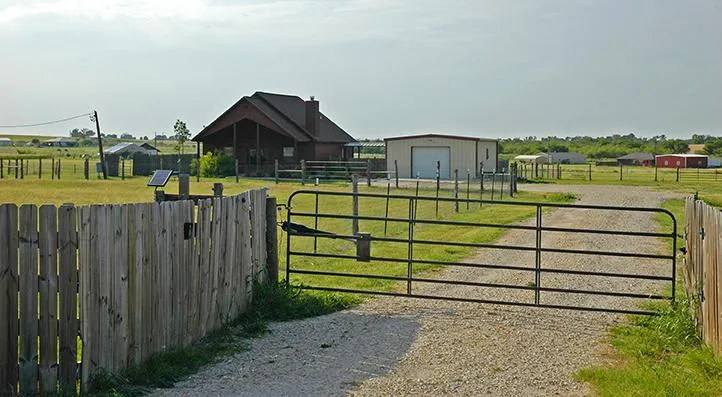 Fantastic horse property has 6 stalls & covered 90x90 arena. Cedar home features stained concrete floors & wood burning FP. Barn has every convenience, wash rack, hot & cold water, tack, hay and feed storage, auto water system, misters. Guest apartment-kitchen, laundry, covered porch is rented at $545. Five pastures and an electric gate.