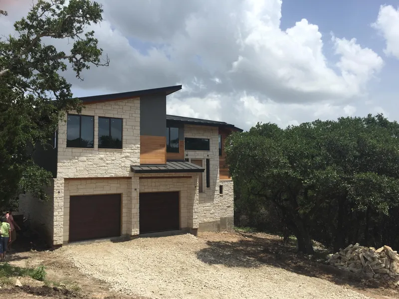 New construction, modern hill country home. It sits on a wooded half acre lot with only a five minute walk to the San Gabriel river. It is a stucco/stone exterior with smooth cedar accents on the front and rear porch areas. The home is 2400 Sf and has two covered outdoor living areas. It is a 4-3-2 open plan with high ceilings. It also has a game room. This home could easily double as a split master home as one of the secondary bedrooms is very large and on it's own level. It would also be a great home for running a home based business. It is a split level entry with the main areas and three bedrooms and two bathrooms on the upper level of the split entry. The lower level is a large game area, large bedroom and a full bathroom. Both levels have their own walk out covered porches. You will feel like you are living in the trees and yet the home is less than a minute from 183 and only a 5 minute drive to HEB Plus. The best of both worlds.