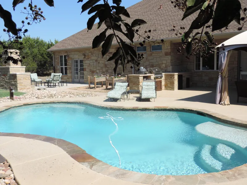 Quality High End Custom Texas Sandstone Ranch Home with 4 bedrooms, 3.5 bath, designer in-ground swimming pool, master suit courtyard with fireplace, outdoor kitchen includes: Jenn-Air Grill & Kamado Joe Smoker, tankless water heater, 3 car garage, - ** Adjacent 2 +/- Acre lot also available for sale - call agent..
