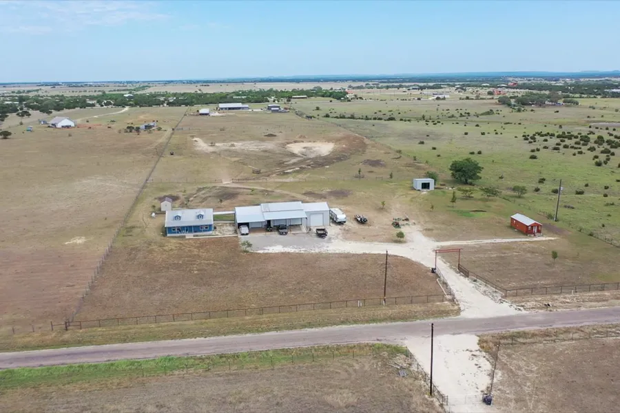 Beautiful two bed two bath 1300 square foot one-story Ranch-style home with 30ft. X 84ft. five bay workshop equipped with a 15,000 lb. rated lift! This property also has a 336 sqft. tiny home that could be used as an apartment for rent or office. The primary residence, workshop, and tiny home are on well water and the well is located in a 10ft. X 10ft. well house. The workshop and well house are both constructed of industrial-strength steel for additional structural integrity. The 10 acres is Ag exempt and also has a newly dug tank on the back of the property that is ready to be filled as soon as we get some rain. Situated just a half-mile right off of HWY 183 this property is conveniently located near Georgetown, Round Rock, and Austin. The primary residence has metal framing instead of wood and spray foam insulation that keeps the electricity bills down. The workshop is equipped...