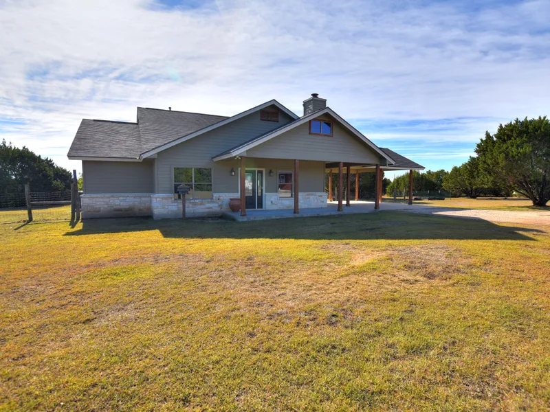 Beautiful custom home on over 14 private acres! Enjoy the peace and quiet in this open floor plan home that offers 3 bedrooms, 2 baths, and features covered front and back porches, easy to maintain stained and scored concrete, granite countertops, crown molding, custom wood cabinets, corner tub with separate shower, and stainless appliances. Outside you an enjoy the detached shop/garage, porches, and fenced in back yard. Kids will attend the highly acclaimed Liberty Hill schools just minutes away!
