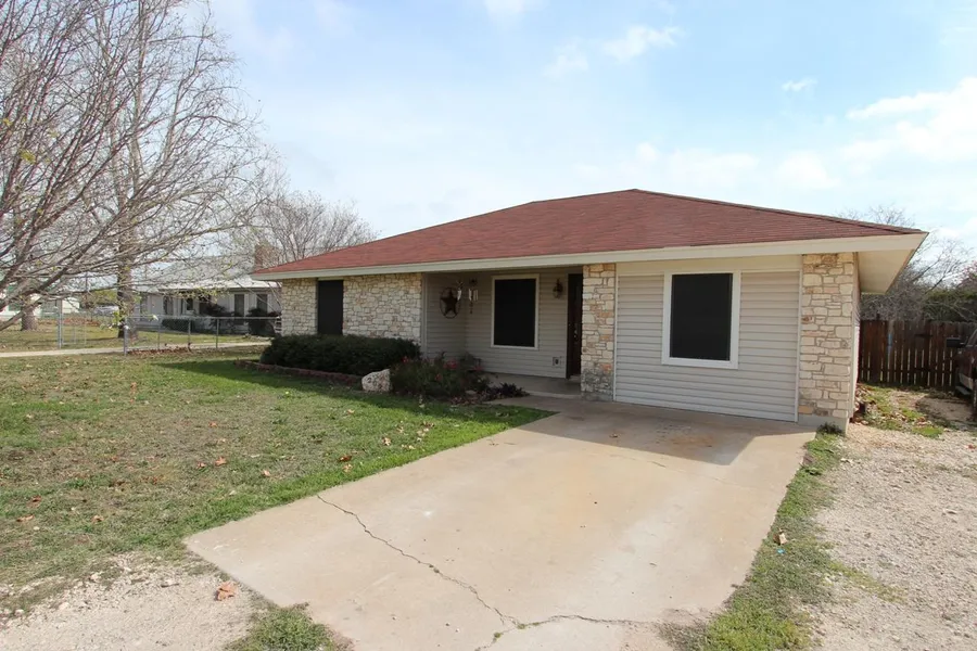 Great home in the heart of Liberty Hill! This 3 bedroom, 1 bath home has great features and sits on over 1/2 acre lot. You will enjoy the vaulted ceiling in the family room, ceiling fans in the bedrooms, tile countertops in the kitchen, covered front porch, back patio, fully fenced back yard, and maintenance free vinyl siding and masonry exterior, just to name a few! Kids will attend the acclaimed Liberty Hill schools. Just minutes to 183A for easy access into Austin!
