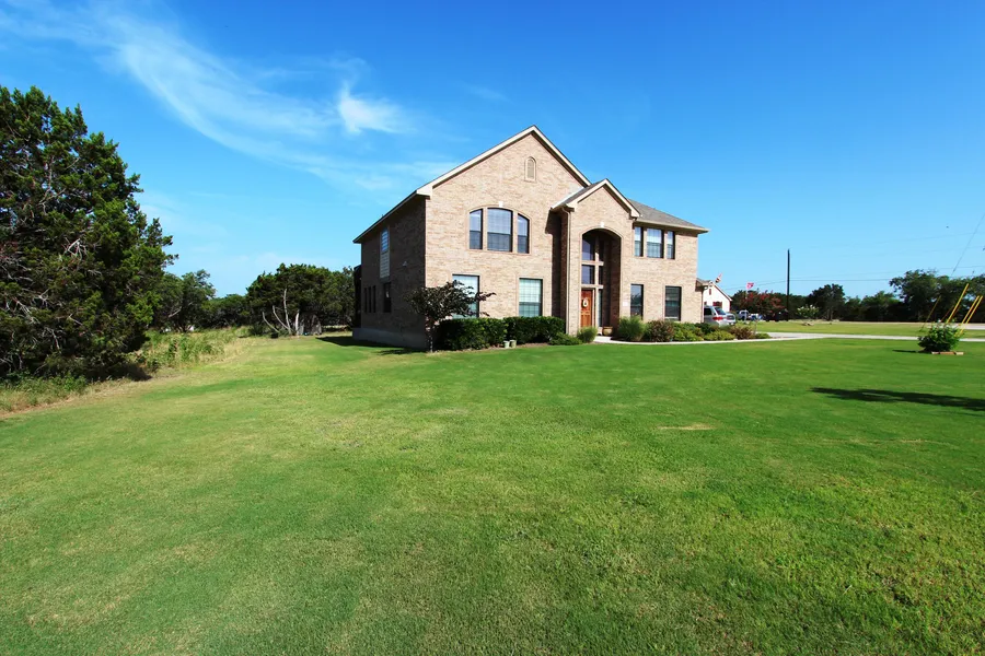 Perfect family home in the acclaimed Liberty Hill School District! Enjoy the 1.3+ acre cul-de-sac lot, hill country views from the balcony, as well as the great features inside. The open floor plan offers 4BR, 2 1/2 BA, Study, Media Room, Sunroom, and Formal Living & Dining! The kitchen has lots of cabinet space with granite countertops and is open to the family room w/fireplace. The master has his/her closets, jetted tub and separate shower! There is also lots of closet space and wood blinds throughout!