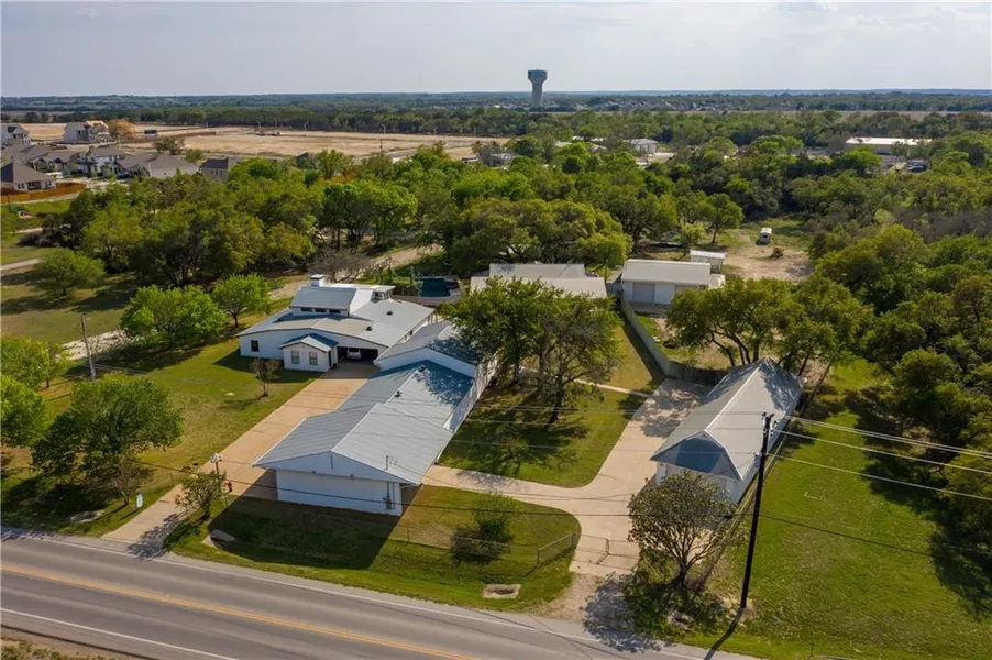 You will love the country living feeling on this 3.9 acre, treed property that has approx 3200 SF main house, approx. 1500 SF Guest House, a garage apt upstairs over the garage with 1 bedroom/1 bath/full kitchen & living area and 3 oversized workshops for whatever you want! Two horses are allowed! Room for a stable! Approx 2 miles to new Glenn High School! 5 mins to Super HEB! Some commercial properties in the area, the home is in the City of Leander and there is city water hookup at the street, also 2 separate septic systems for 2 different areas of the land/homes and you can park your boat/RV/cars in the various garages/work areas/carport & more! Water well that is deep to the Trinity Sands water level. Swimming Pool with spa! Use the other address of 4150 CR 279, Leander , TX to use your GPS to get to the land/homes( Post Office changed the address but the old address works best to get there ) Great property! Room to expand! Great for a family with extended family too! Pool being worked on due to Feb ice storm & parts broken