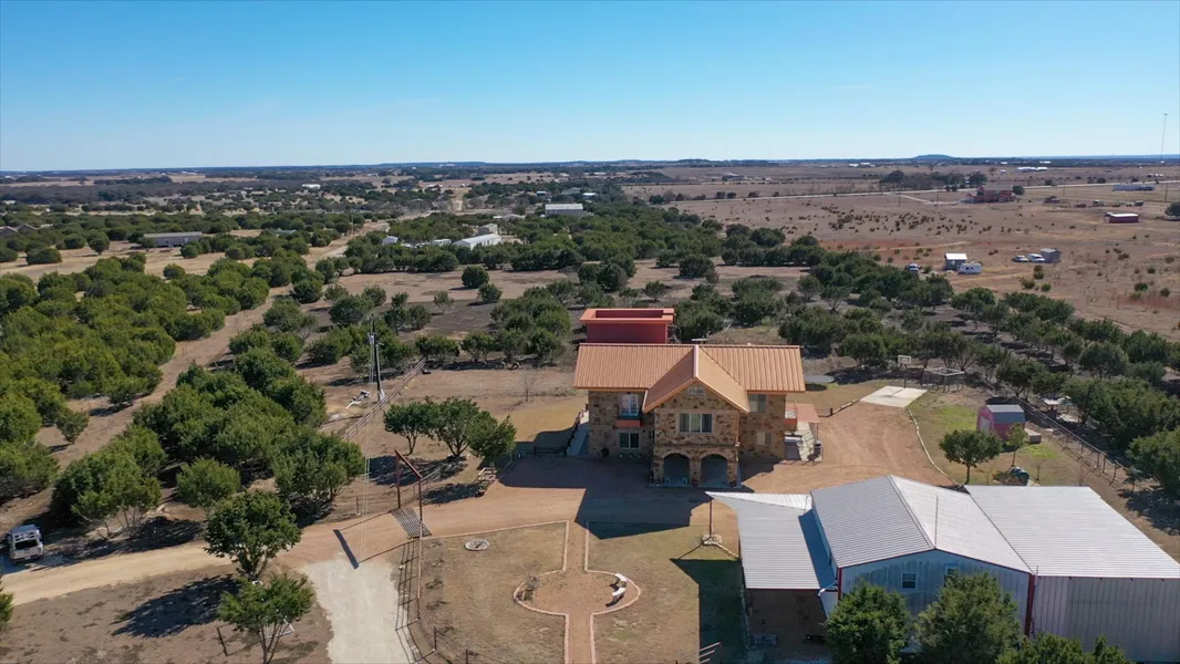 This beautiful 5 bedroom, 4 bath house with an office that could be a 6th bedroom on almost 8 acres in the country is the perfect setting for a family that wants the country life with all the amenities of a custom home and yet 30 minutes to Georgetown and 30 minutes to North Austin via HWY 183. This 2016 built home is constructed of industrial strength steel beams and pillars along with spray foam insulation to keep the energy costs down. The open floorplan is great for a large family or entertaining as the main floor living area is open to all other areas of the house. There is a great secondary living room on the 2nd floor that could be kept the way it is or you could convert into a large media room. This house was built to have views from every room on the 2nd floor and that was achieved by having a balcony on all but 1 bedroom on that floor. Making up for the one room that doesn't have a balcony is a 2nd story deck that allows you to relax or entertain from the 2nd floor. From the 2nd story deck you can go up the wrought iron spiral staircase that takes you to a covered deck that would be a great area for an outdoor kitchen and if that is not enough you can continue up the spiral staircase to an observation deck that allows you to see as far as the eye can see and would be a great place to stargaze on those long summer nights. The property also has an outbuilding that has a concrete slab foundation that has an extra room on the 1st floor along with a room on the 2nd floor that would be great for guests to stay while visiting.