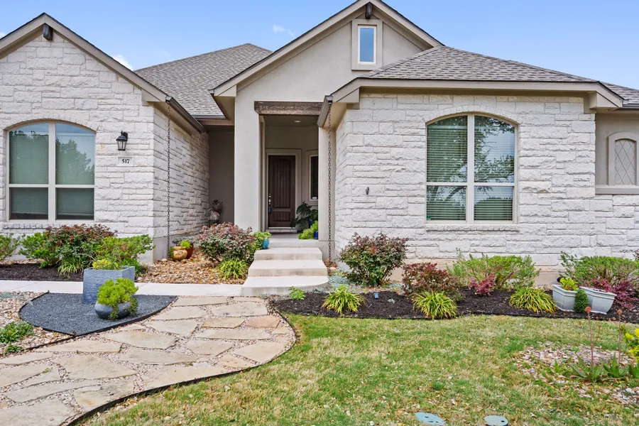 Rio Ancho is one of Liberty Hills hidden gems, with a private community swimming pool, clubhouse, childrens play area and access to the water of the San Gabriel River gently making its way along the edge of the community. Nestled amongst the trees on what is arguably one of the most lush lots of this stellar neighborhood, the single story home at 517 Buffalo Trail transports you to a serene oasis with the perfect balance of size, design, technology and natural outdoor elements.