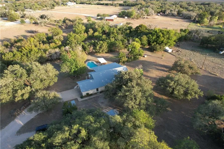 Amazing location, close to downtown Liberty Hill and the new H-E-B that opened in fall 2021 on Ronald Reagan and Highway 29. This property provides a low tax rate, land and privacy, all while being close to amenities. This beautiful 3+acre private retreat features large oak trees, an inground private pool, a whole-home generator that runs off of the 100-gallon propane tank, a one-story living with four bedrooms and an open concept in the main living space. The grounds provide a gated entrance, a large chicken coup, a well-house with insulated piping and a 1,000-gallon storage tank, a storage shed, a large-insulated workshop with a window air conditioner and multiple covered parking areas. Wonderful opportunity for extra parking or potential casita - buyer to verify all use opportunities in deed restrictions. Come explore all the opportunities this property can offer!
