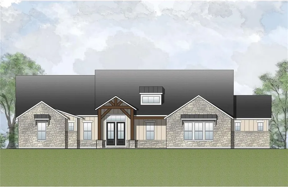 The Channing II is an expansive single-story home. The open living triangle features an impressive family room that opens to the covered porch and extended outdoor living area. The gourmet kitchen offers abundant storage space with lots of custom cabinets and a large walk-in pantry. The owner's retreat extends along one side of the home with a relaxing spa bath and a closet fit for royalty. A private guest suite rests off the foyer and two additional bedrooms and the entertainment room lies just beyond the dining room. The spacious laundry room gives you plenty of storage, and the huge 4 car garage will be the envy of your neighbors. All of this on a lovely, one-acre piece of the hill country. ***Schedule a self-guided tour of this home using the QR code in the photos!***