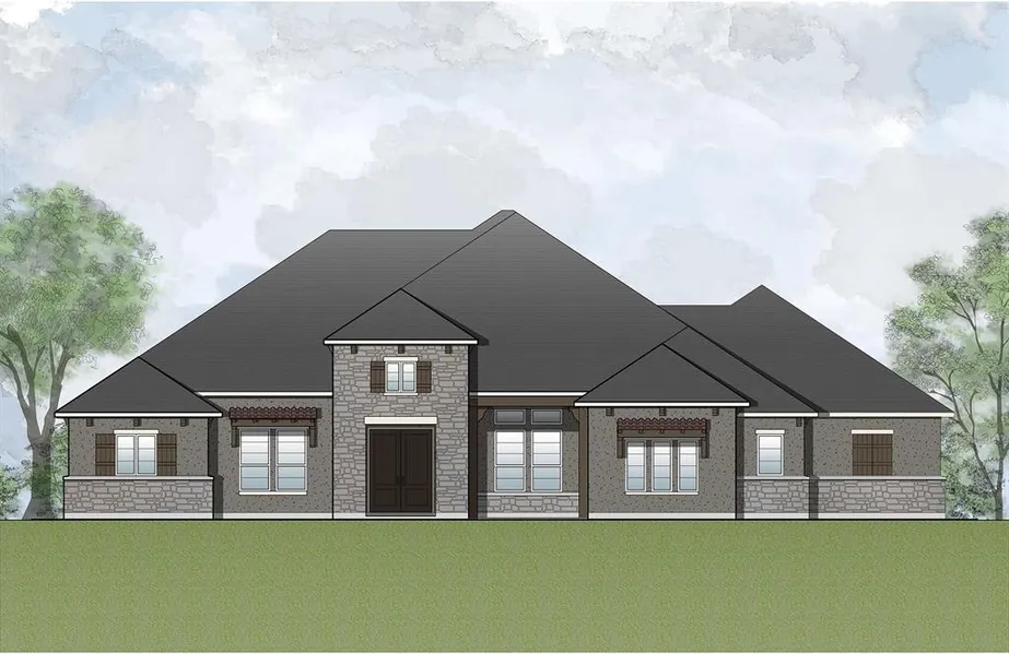This Channing II is an expansive single-story home, with the added bonus of a fantastic upstairs space. The open living triangle features an impressive family room that opens to the covered porch and extended outdoor living area. The gourmet kitchen offers abundant storage space with lots of custom cabinets and a large walk-in pantry. The owner's retreat extends along one side of the home with a relaxing spa bath and a closet fit for royalty. A private guest suite rests off the foyer and two additional bedrooms and the entertainment room lies just beyond the dining room. The spacious laundry room gives you plenty of storage and room for projects. The upstairs option has been added to this home, complete with a game room, two additional bedrooms each with private bath, and a covered upstairs patio. All of this on a lovely, one-acre piece of the hill country.
