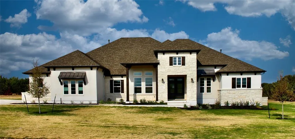The Channing is an expansive single-story home. The open living triangle features an impressive family room that opens to the covered porch and extended outdoor living area. The gourmet kitchen offers abundant storage space with lots of custom cabinets and a large walk-in pantry. Entertain in style with the elegant formal dining room, and unwind from the day in the spacious entertainment room. The elegant owner's retreat extends along one side of the home, while the other side boasts three additional bedrooms, all with private baths. This home is one of a kind, tucked away on a full acre in the scenic community of Clearwater Ranch.