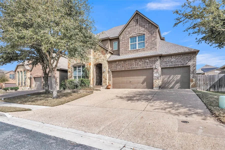 Welcome to 412 Rock Ridge Trl in the highly sought-after Stonewall Ranch community of Liberty Hill. This stunning home offers a spacious and versatile layout with 5 bedrooms, 4 full bathrooms, and a 3-car garage. One bedroom can serve as an office, complete with a closet for added flexibility. The grand entryway features soaring ceilings, while the living room showcases coffered ceilings, a beautiful stone fireplace, and abundant natural light. The open-concept kitchen is designed for both style and function, boasting walnut-stained cabinetry, earth-tone granite countertops, and a butler's pantry with a bar counter, seamlessly connecting to the formal dining area-perfect for entertaining. The primary suite is conveniently located downstairs, offering an extended bay window, furniture-style vanities, and an oversized walk-in closet with custom organizers. Crown molding adds an elegant tou...