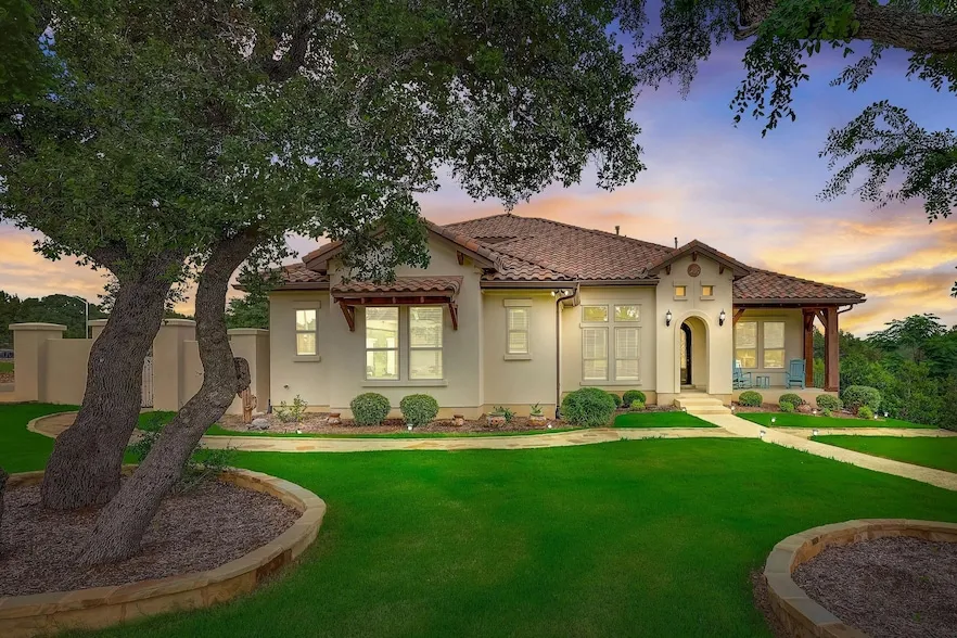 Welcome to 201 Coopers Hill Rd, a stunning custom-built stucco home that epitomizes luxury and elegance in the heart of Georgetown, TX. This exquisite residence, adorned with a charming Spanish tile roof, offers an expansive 2,945 square feet of meticulously designed living space set on a serene 1-acre lot. As you step inside, you'll be greeted by a spacious and inviting floor plan featuring 5 generously sized bedrooms and 3 full baths, perfect for accommodating family and guests. The heart of the home boasts a gourmet kitchen, ideal for culinary enthusiasts, seamlessly flowing into the bright and airy living and dining areas, perfect for entertaining. The outdoor space is nothing short of a personal paradise. Dive into the refreshing saltwater pool and spa, or unwind by the 5,000-gallon koi pond, a tranquil oasis surrounded by wrought iron fencing that ensures both privacy and ele...