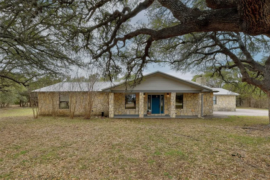 Discover the charm of rural living at 123 Cooks XING, Liberty Hill, TX, a single-family residence set on a 2.96 acre lot situated in the heart of Texas. This cozy home is 1620 sq ft featuring 3 beds and 2 full baths. Imagine relaxing evenings in the living room, where a comforting wood burning fireplace casts a warm glow upon the beamed and vaulted ceiling, enhanced by elegant crown molding. The primary bedroom offers a serene escape, with crown molding adding a touch of sophistication. A walk-in closet with built in shelving provides generous storage, ensuring your belongings are neatly organized. The spacious primary bathroom offers a private retreat, featuring a tiled shower perfect for starting your day with ease. In the kitchen, culinary dreams come to life with the assistance of a double oven, granite countertops, full tile backsplash, and a convenient kitchen peninsula, complete with a stovetop for effortless meal preparation. The outdoors features a 900 sq ft shed that can be converted to a horse stable, an 1100 gallon water storage tank, private driveway and mature trees. Neighborhood association offers pool membership for a seasonal fee. Zoned to Liberty Hill ISD this a truly remarkable property that you do not want to miss!