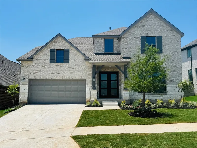 Westin Homes NEW Construction (The Wimberly II) READY NOW! In highly sought after Wolf Ranch. ON A GREENBELT LOT WITH 3 CAR GARAGE. Gorgeous 2-Story Rotunda Entry w/ Wrought Iron Circular Staircase. Gourmet Open Island Kitchen w/ Quartz Countertops, 42" Tall Kitchen Cabinets w/ Uppers & Built-In Stainless Steel Appliances. Family Room w/ High Ceilings & Wall of Windows. Large Covered Patio. Private Primary Suite Down w/ Luxurious Bath Featuring Double Vanity Sinks w/ Quartz Countertops, Large Walk-in Shower & Free-Standing Tub. Second bedroom downstairs with private bath. Study w/ Double Doors Downstairs. Upstairs features Media Room, Game Room & 2 Beds / 1 Full Baths. Tray Ceilings, Architectural Details and more!