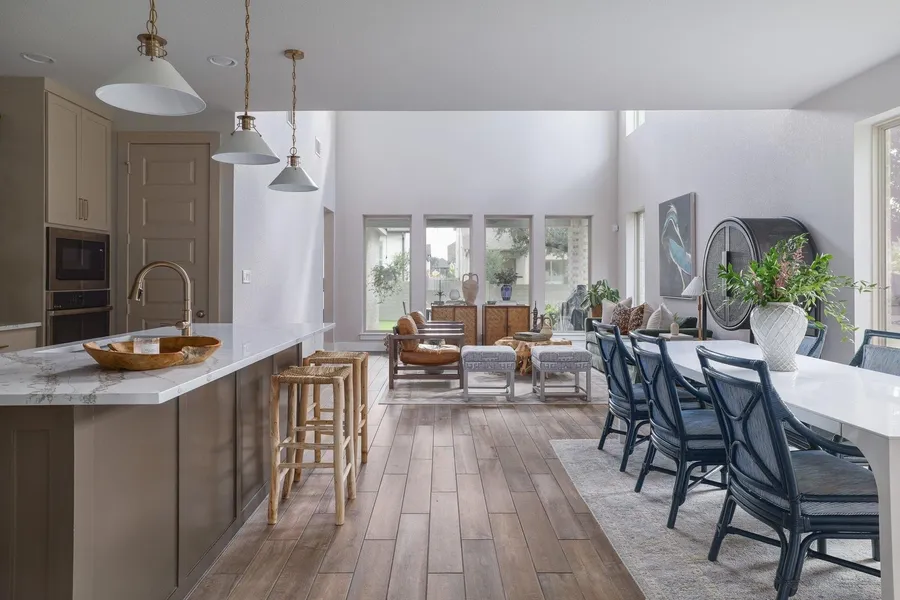 Exceptional Design Meets Rare Double Lot Opportunity in Award-Winning Wolf Ranch. Redesigned with an elevated aesthetic rarely seen in Wolf Ranch, this stunning 4-bedroom, 3-bathroom residence stands apart as a true one-of-a-kind offering. Every detail—from materials and finishes to layout and flow—has been thoughtfully curated to create a home that feels both refined and remarkably livable. Located in the prestigious Wolf Ranch community—named 2024 Community of the Year by the Austin Business Journal—the home was built in 2022 and sits on one of only a handful of true double lots in the neighborhood. Nestled under priceless heritage oaks, the ¼-acre homesite offers a sense of space and privacy that is seldom available. The open-concept floor plan is anchored by a remodeled kitchen, featuring custom cabinetry, premium countertops, floating shelving, and Farrow & Ball color palette. State...