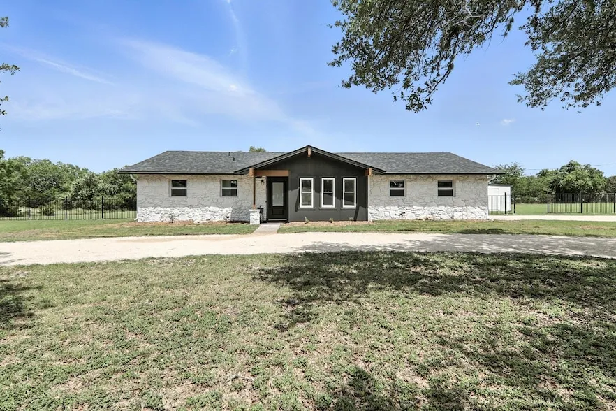 This is the combined listing for 7+ acres and fully renovated ranch style 3/2 with fully built out she shed, workshop, lawn storage and Party Barn. Your Hill County Homestead awaits with its blend of classic charm and modern upgrades. Every inch has been thoughtfully updated enjoy all-new finishes including soft-close cabinetry, granite countertops with coordinating backsplash, and brand-new stainless steel kitchen appliances. The interior of this 3 bed, 2 bath charmer boasts fresh paint, stylish wood-look tile floors throughout, and beautifully tiled bathrooms that extend to the ceiling for a high-end touch. The primary suite is a true retreat with a sliding glass door in the luxurious walk-in shower. All upgraded LED lighting throughout the home enhances energy efficiency and ambiance. The garage features a sleek epoxy floor, while outside you ll find multiple spaces to work and play. A finished-out office or game room cabin gives you flexibility for remote work or hobbies. Entertain effortlessly in the party barn complete with outlets for a TV, misters, and ambient lighting. The expansive workshop includes a dedicated lawn care storage area, new wiring, and bright LED shop lighting perfect for any project. It s more than a renovation it s a full transformation into a turnkey Hill Country haven on 7+ acres allowing you to live out your homesteading dreams with plenty of room for gardening, chickens, goats, whatever your hearts delight! *Square footage includes additional heated/cooled she shed.