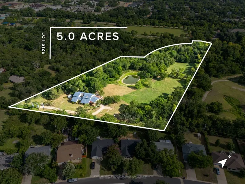 Tucked away on 5.29 private acres, this one-of-a-kind property offers the best of both worlds-peaceful seclusion and proximity to city conveniences. Bordered by a serene creek and adjacent to a city park, the land feels like your own private retreat, yet you're just a mile and a half from Dell Technologies and major Round Rock amenities. Horses allowed. At the heart of the property sits a custom mid-century modern stone home, oriented perfectly to catch the morning sun. This 1,917 sq ft residence features 3 bedrooms, 2 bathrooms, and striking architectural details throughout, including two interior atriums that bring natural light and the outdoors into the living space. The expansive back deck overlooks a tranquil pond and mature trees, creating a picture-perfect setting for relaxing or entertaining. Whether you're enjoying the view, exploring the acreage, or simply savoring the quiet, this home offers a rare blend of style, serenity, and location. A truly special property where nature, architecture, and convenience converge.