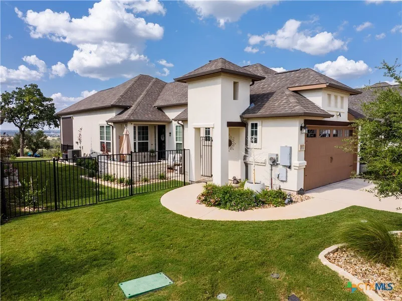 Enjoy the comfort and security of a true lock-and-leave lifestyle—perched on a hilltop within one of the area’s most sought-after communities, and showcasing million-dollar Hill Country views! This custom Sitterle home blends stylish, high-end finishes with serene low-maintenance living, offering an ideal retreat for both full-time and part-time residents. From the moment you arrive, you’re welcomed by a private gated courtyard that sets a warm and peaceful tone. Inside, natural light floods the open-concept living, dining, and gourmet kitchen spaces—where expansive windows frame sweeping views for miles. The kitchen offers a built in gas stove, oven, expansive kitchen island and oversized cabinets. The spacious primary suite is privately tucked at the back of the home and enjoys the same breathtaking scenery, while the spa-like bath invites you to unwind with a deep garden tub, walk-in ...