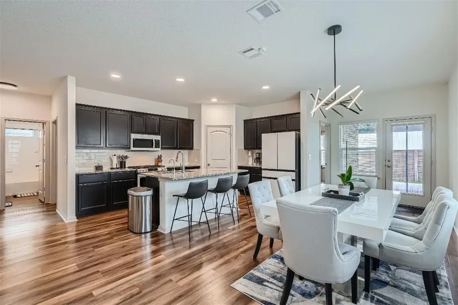 Welcome to this stunning home in the Fairhaven subdivision of booming Georgetown! This home offers both versatility and functionality, designed to cater to any style. With a charming curb appeal, it is move-in ready, featuring 4 bedrooms, being 3 bedrooms and 2 full baths on the main floor, along with an additional bedroom and bathroom on the upper level. The HUGE flex space upstairs provides endless possibilities, perfect for a home office, playroom, or guest suite. The main floor boasts a spacious open floor plan, seamlessly connecting the kitchen, dining, and living areas, filled with plenty of natural light. The luxury light wood-like vinyl plank flooring spans the open area, providing a cohesive flow, durability, and easy cleanup. The kitchen is a chef's delight, with elegant granite countertops, rich dark wood cabinetry, and a large island perfect for family gatherings and entertai...