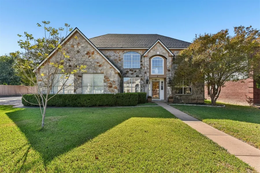 This beautiful corner-lot home on a cul-de-sac street offers an exceptional floorplan with room for everyone! Perfect for multi-generational living, it includes a downstairs bedroom with an ensuite full bath, spacious living areas on both levels, and a large home office behind French doors. Each of the five bedrooms has direct access to one of the four full bathrooms - three of them arranged in Jack-and-Jill style - so no more fighting over bathroom space. Storage is abundant, with a three-car garage and a mud/utility room featuring backyard access, built-in cabinets, and plenty of space for pet essentials or personal gear. The home is filled with standout features, including striking curb appeal with its popular white-stone exterior and side-entry garage, a matching floor-to-ceiling stone fireplace in the living room, a bright and open feel from numerous large windows, and an extended p...