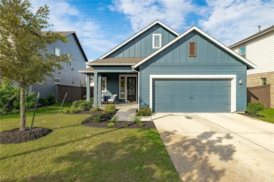 Beautiful barely lived-in home in coveted Bryson! Smart, open concept design with 3 spacious bedrooms and 2 full bathrooms. Within walking distance to the Bryson Backyard amenity center and North Elementary. Charming curb appeal with a real neighborhood feel. Large, fenced backyard with covered patio. Refrigerator conveys, move-in ready with upgrades throughout including countertops, recessed lighting, cabinet pulls and more.