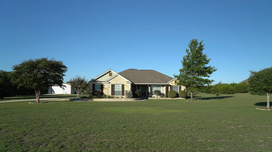 Immaculate and well cared for! 121 Cara Cove sits privately on an open, level lot featuring native Texas landscape, organic garden area featuring a high-quality metal building/shop. The home exudes quality construction by Drennan Day with timeless finish detail. The floorplan is welcoming and efficient. An open concept living, kitchen, dining, and breakfast bar are anchored by a classic Texas stone fireplace. High ceilings and recess can lighting create additional space and highlight its move-in ready condition. The kitchen is a great use of space with a wonderful built-in desk/planning center -apothecary style cabinet featuring glass front doors. The best use of space gives the primary suite separation from the other three bedrooms, which are all spacious with generous closets. A partially covered back patio is great for entertaining year-round and is the perfect vantage point to enjoy...