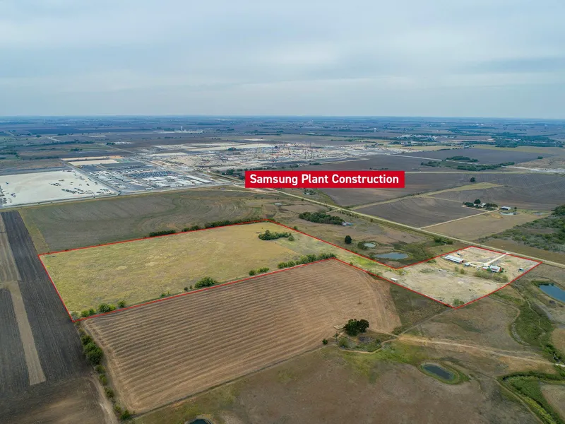 LOCATION - The property is on County Road 404 (Rio Grande St), just half a mile east of FM 973 where the Samsung plant is under construction, making it a prime location for Samsung-adjacent commercial or residential development. It is just two miles south of Taylor High School, four miles south of downtown Taylor, and 10 miles east of Hutto.