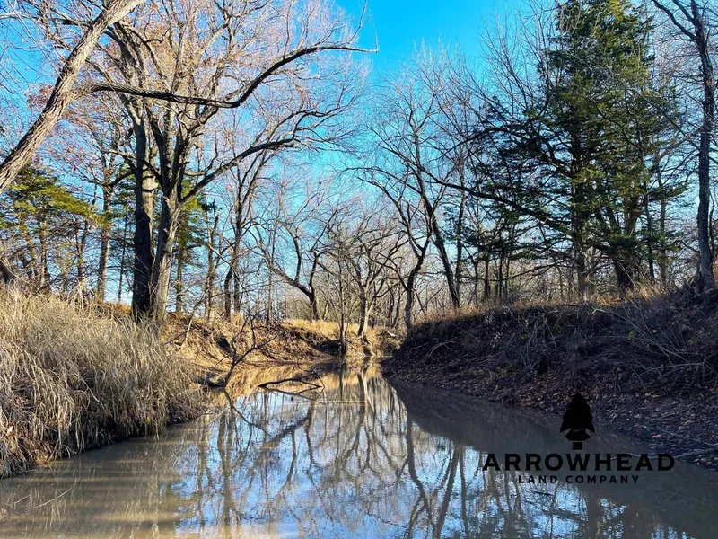 Price reduced! If you are in the market for an incredible recreational farm with much to offer, this Wilson County farm couldbe the one for you. Located just 15 +/- minutes southwest of Fredonia, Kansas, this property is in a greatlocation for some phenomenal hunting, with the luxuries of town close by. As you enter the front gate, a longdriveway will bring you to a small cabin that is ready to host your annual deer camp. The cabin has onebedroom and one bathroom, as well as a full kitchen and living room with bunk beds for your extra hunters.From the cabin deck you can drink your morning coffee and watch ducks land on the 3 nice ponds. Also, alarge metal building is located next to the cabin. This building contains the water well system, a bathroom,and is a great place to store your hunting gear and equipment such as an atv and tractor. West RainbowCreek flows through the property offering consistent water and massive hardwood timber that is amazinghabitat for whitetail deer and turkeys. Not only does this property offer incredible recreation, the 38+/- acretillable ground and 8+/- acre hay meadow offer an additional return on your investment.