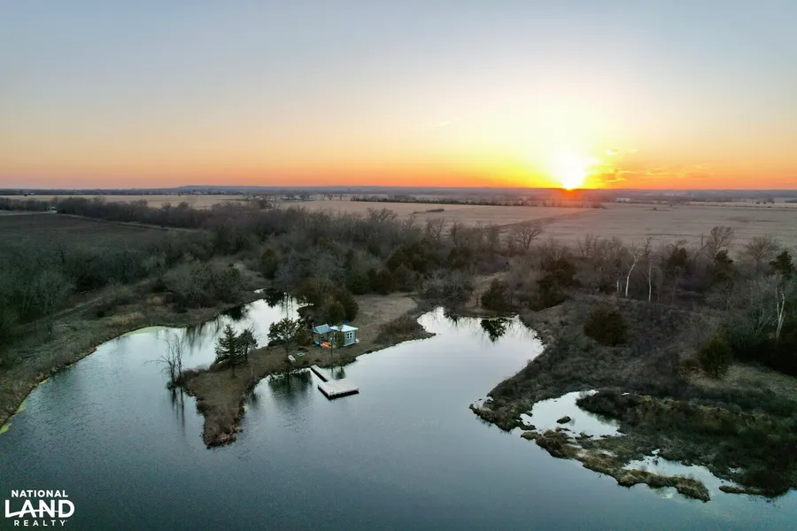 Stunning 77 acre recreational retreat consisting of thick timber, beautiful home/cabin, shop, ponds, and creek. The property is home to whitetail deer, migrating waterfowl, turkeys, and large bass. Take the winding driveway to the heart of the parcel and you will find a beautiful 1,100 square-foot, two bed, two bath home built in 2021. While the home is currently a full-time residence, it would also make an excellent weekend cabin. The open layout features abundant natural light and a stunning view overlooking the pond behind the house. Need to relax after a hard day? Rinse off at the outdoor shower and then soak in the hot tub. The 36x50 shop is another standout feature. Spray foam insulation, oil burning stove, and a heated floor will keep you comfortable during colder months. The shop includes two garage doors, 16' sidewalls, and is plumbed for a bathroom install. On each side of the shop is a lean-to, perfect for an RV or miscellaneous equipment. Both the house and shop are supplied by a natural gas line at no charge. The largest pond, just shy of 2 acres, you’ll find a small off-grid cabin and large dock. Trails have been cut throughout this land making it easy to maneuver about. Live - Relax - Chase Kansas wildlife. Contact an agent. Tim Vietti: 620-305-8180, Valorie Vietti: 620-212-5150. *Click the virtual link tab for wildlife videos and photos.
