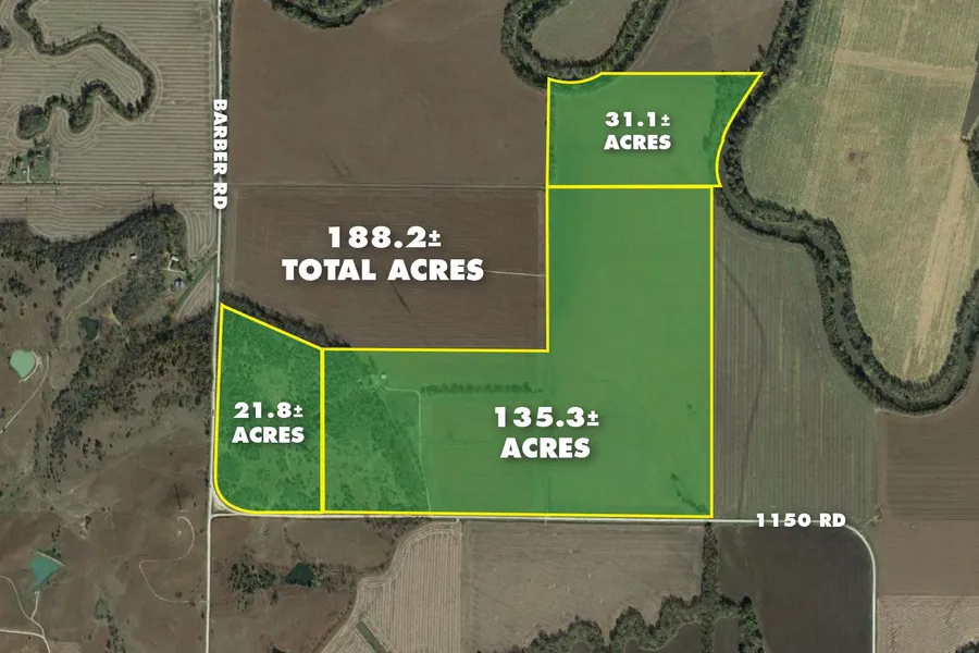 ONLINE ONLY!!! Great opportunity to purchase 3 lots, totaling 188.2 +/- acres, selling together in Wilson county, along Fall River! There is approximately 57 acres of timber with the bulk of the remaining acreage planted to soybeans. Possession of the tillable acreage will be given once farmer removes soybean crop in the fall. Fantastic opportunity to invest in land!