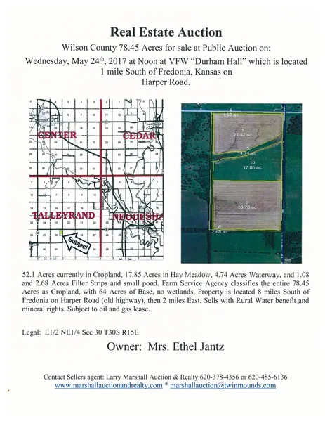 Wilson County 78.45 Acres for sale at Public Auction at VFW Durham Hall