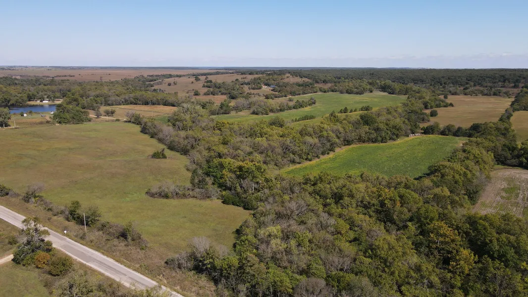Features include approximately 30 acres of tillable crop ground that's lightly rolling with well-maintained terraces and soils that are mostly highly-desirable Verdigris silt loam and Dennis silt loam. There's also approximately 22 acres of Native and brome grass mix that's currently being used as hay meadow. The balance consists of mature hardwood timber and cedars lining Meadow Creek.