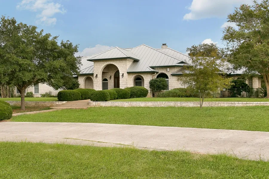 Visit Sturm Ranch, Country living, City style. This huge home has everything! Open floor plan. Kitchen boasts granite breakfast bar, smooth cooktop, double ovens, custom millwork, side by side frig/freezer. Kitchen adjacent butler's pantry/wet bar with ice maker & built in warming tray. Open floor plan includes breakfast nook, dining room & family/great room with corner, stone fireplace (gas logs). Master bedroom with exterior access, enormous bath with everyone's dream closet! Built in murphy beds in 4th bedroom. Jack & Jill bath between bedrooms 2 & 3. Office with built in library & separate craft/hobby room with more storage. Utility room: sink &pantry storage. Exterior: 49.89 acres, Ag Valuation, fenced/cross-fenced, water well for stock pond, some pastures with sprigged coastal. Beautiful inground pool with adjacent outdoor kitchen & pool house with bath. Koi Pond, port cochere, til...
