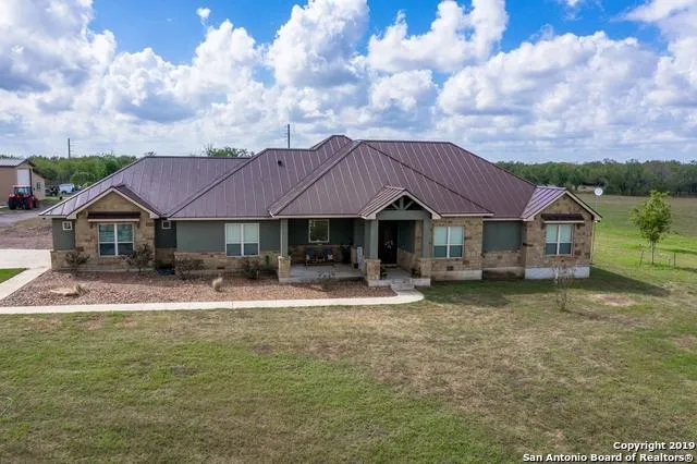 Upscale 4BR/3BA home sits on approx. 9 acres of beautiful countryside.It's a MUST See! Gourmet Island Kitchen features upscale appliances,built-in fridge,dbl dishwashers,9 burner gas range w/2 ovens&griddle.Wood tile throughout.4th bedroom converted to media room. Master Suite features Full bath,W/I shower(2 heads),stand alone tub,Lg.W/I closet.Back patio w/Fireplace overlooks outdoor oasis,heated saltwater pool,waterfall,& Full outdoor kitchen,A/C shop w/attached 1BR/1BA apartment 14 ft door. So Much More!
