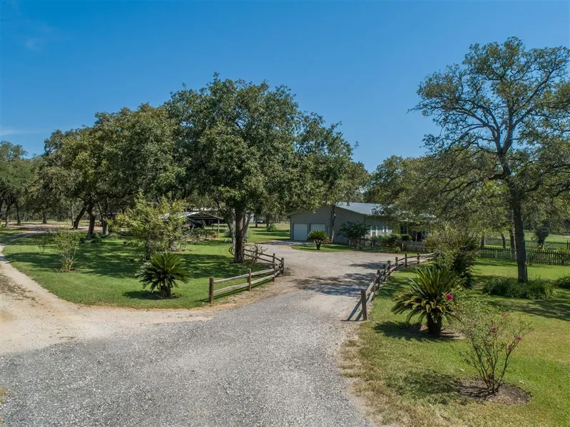 The 35.7 acres is about 70 % wooded with Post Oaks and Hickory Trees and 30% open pasture with Coastal Bermuda as the major grass. Most of this secluded property sits 865 ft back from FM 775 with the back portion of the property also having access via CR 328. The lush garden area around the home compound is approximately 3 acres of irrigated St. Augustine carpet grass with various ornamental shrubs and plants throughout The high point of the property is near the center of the acreage with gentle slopes to the front and back The land is divided with cross fencing into separate traps for cattle with access to livestock water in each. The back third of the property contains an 8-acre hayfield comprised of Tifton and Coastal Bermuda.