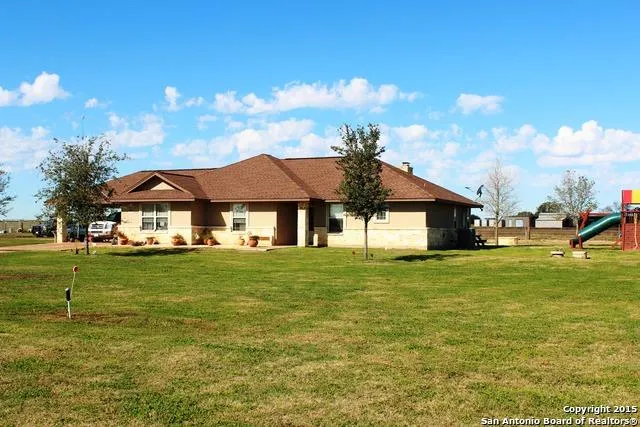 Ranch House on 21.48 acres. Rock/Stucco home around 2800+ sqft 4 bedrooms, 3 full baths, & Office, 2 Lg living areas, rock fireplace, tile flooring, Lg Kitchen, w/island, lots of cabinets & counter space. 24x20 carport. Property is fully fenced and cross fenced w/low AG-Exempt taxes. Stocked tank/pond for fishing. Back acreage sprigged in coastal. Irrigation water well just drilled 10/2014. Metal barn structure consisting of 4 ea. 12x12 pipe stalls, 20x12 feed area w/bath, 40x20 equip cover. So much more
