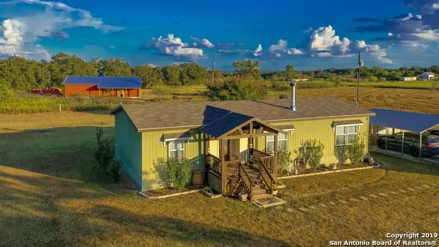 Pending ---Fantastic opportunity in Stockdale ISD!! Beautiful modular home on 6 acres. 3 bedroom 2 bath home with open concept living area, great for entertaining! Covered porch off both front and back entrances offer the perfect spot to enjoy coffee in the mornings and sunsets in the evenings. As if this immaculately maintained home wasn't enough, outside you'll find a horse stall as well as a covered carport with an attached 10x10 shed - all this within the fully fenced 6 acres.
