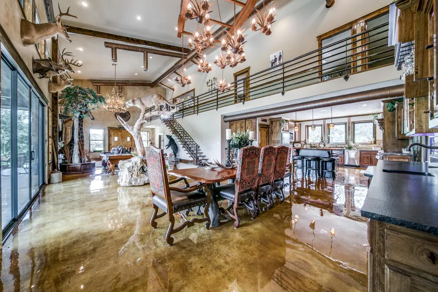 Arrow Head Ranch is an impressive and meticulously cared for 45+/- acre family ranch ranch, with 6ft fencing and 5ft cross fenced. The custom built Barndominium is one of a kind home sits in back of the property which allows for privacy. The beautiful professionally landscaped grounds are breathtaking, also comes with professionally installed sprinkler system. Astro turf surrounds the custom built pool with a spacious Patio to relax and enjoy the views. The majestic 26ft ceilings in the home are spectacular to go along with 6000sq ft. home. Featuring 4 bedrooms, 3 full baths, game room, storage room, workout room and a gourmet kitchen with custom built cabinets and commercial grade appliances. The open floor plan allows for great entertaining and large family gatherings. There is a 1260sq ft. attached garage and a 900 sq ft. detached garage. This property has so much to offer and is loca...