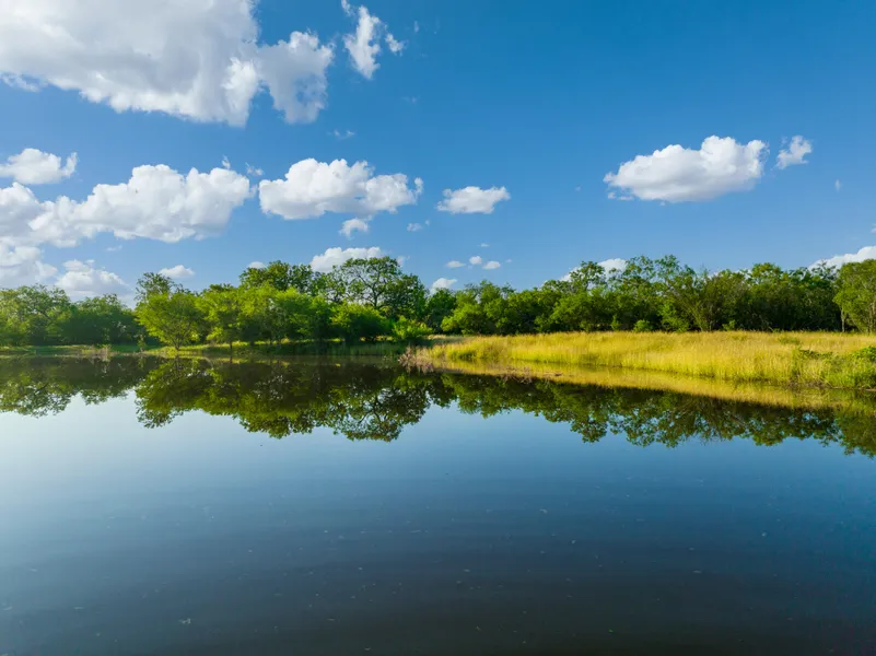 This ranch offers gently rolling terrain, a mix of lush bottomland vegetation, mesquite flats, and extensive rolling grasslands. In many ways this property is reminiscent of a South Texas hunting ranch with senderos cut through the mesquite flats offering excellent hunting opportunities.