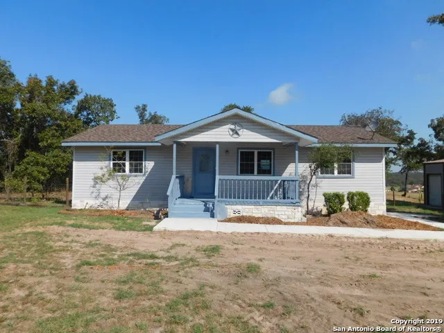 Come live in the country close to San Antonio in a well established subdivision ten minutes from downtown La Vernia. Property is beautifully located on more than one acre with mature oak and hickory trees on a hill over-looking a plush green valley with views on clear days all the way to downtown San Antonio. Detached 2-car carport with workshop adjacent to house. House has been meticulously refurbished with new central AC system, kitchen counter tops, floors, and freshly painted. Come see to appreciate.