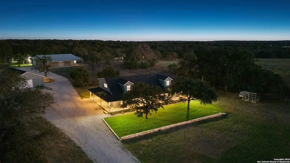 Welcome to your dream home, where country charm meets modern luxury! 2024 RENOVATION OF PRIMARY HOME, GUEST HOUSE AND NEWLY CONSTRUCTED 30' X 60' ENCLOSED METAL BUILDING! Located in the award winning La Vernia Independent School District, this property is not just a home, it's a lifestyle. Large primary home, guest house and outbuilding, this stunning property has something for everyone. It features a spacious main residence meticulously rebuilt from the studs, showcasing every modern amenity. With close to 3,300 s/f of living space, this home boasts an open floor plan with two master suites-one on each level-allowing for versatile living arrangements. Step inside to discover a huge kitchen that is a chef's paradise. It features solid wood cabinetry, a striking zellige tile backsplash, and expansive quartz countertops with a generous island. Equipped with stainless steel appliances, a 36" commercial gas range, two dishwashers, and a deep one-basin sink, this kitchen is designed for both everyday meals and grand gatherings. A butler's pantry adds an extra touch of convenience, providing ample storage for your smaller appliances and prep space. The home also features two inviting living areas, perfect for relaxation and entertainment, a relaxing fireplace, and as well as beautifully vaulted ceilings, with tongue-and-groove shiplap, adding warmth and character throughout. Outside, a wrap-around porch invites you to take in the breathtaking views that extend all the way to San Antonio. The expansive 2 bedroom, 1,100 square-foot guest house includes an attached two-car garage, providing comfortable accommodations for friends or guests. Need more space? The property features a 30'x60' enclosed metal building with a 200-amp service and an extended 20'x60' covered area, ideal for hobbies, business or storage. This building includes a separate office space with HVAC and is plumbed for a bathroom-perfect for work or play. Every inch of this home has been carefully upgraded with new windows, plumbing, electrical systems, roof, and two HVAC units, ensuring comfort and peace of mind. With the entire property fenced in for privacy and security, this is a must-see home! Too many features to list-experience it in person and fall in love with country living at its finest!