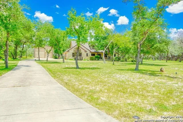 Welcome home to this beautifully crafted 3329 sq ft custom Rock home in La Vernia TX on a large 2.55 Acre Lot. As you enter this home you'll appreciate the upscale Custom features to include a Mosaic Tile entry, high Tray ceilings w/Crown Molding, separate Office, Formal Dining & Living room w/gorgeous Rock Fireplace. The well appointed Kitchen has views to your backyard & includes an Island, custom Cabinets, built in Hutch, undermount granite Sink & Countertops & walk-in Pantry. Also has Laundry room w/Wash sink, plenty of Cabinets & Counter space great for Hobby or Sewing room. Private Master Suite w/wood flooring & Bath has separate Jacuzzi Tub & Shower. Split Floor plan w/good size secondary Bedrooms, Bonus room up w/full bath & walk in closet, can be used as another Bedrm, Media Room or etc. Love to tinker or travel? check out the 50x25 RV Garage/Workshop, insulated w/Electric to include 14x12 Door & 18' Ceilings, plus an addtl.12x20 Storage shed. Radiant barrier roof decking & Solar window screens for energy efficiency, Sprinkler System & H20 Softener. Come see & enjoy the spacious front & backyard covered patio areas with lots of mature trees and nature abound.