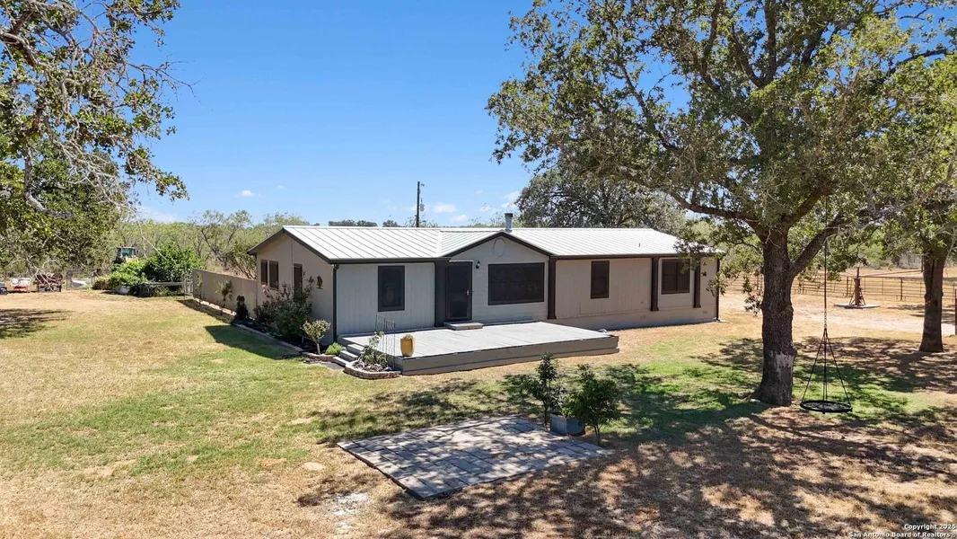 Less than an hour from downtown San Antonio, this 18-acre ranchette in the charming town of Stockdale offers the perfect blend of Hill Country living and wide-open space. Fully fenced and gated, the property is thoughtfully designed for a true country lifestyle, complete with multiple corrals, cow pens, dog runs, a chicken coop, and a horse barn. Additional improvements include a three-sided covered four-car carport with storage, plus multiple sheds for equipment and supplies. As you make your way down the quarter-mile private drive, you'll be greeted by land that has been carefully cleared while preserving hundreds of majestic oak trees, creating a picturesque backdrop for this peaceful retreat. At nearly 2,200 square feet, the residence was designed for comfortable living with an open-concept layout, four bedrooms, and two full baths. The living room, anchored by a cozy wood-burning fi...