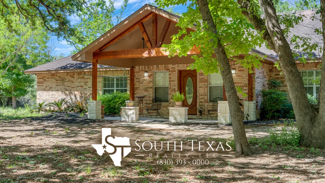 Welcome to a beautiful home nestled in beautiful, peaceful oak trees. This spacious home features 4 bedrooms and 2 and a half baths, a large kitchen with a huge sit-at island, and two living areas. The breakfast room provides a cozy and inviting space to start your day, while the formal dining room is perfect for hosting dinner parties or holiday gatherings. The formal living room boasts a beautiful brick accent wall with custom built-ins, creating a warm and inviting atmosphere. The second large living space with fireplace and a wall of built-ins has skylights and is the perfect spot for relaxing and enjoying time with loved ones. High ceilings and lots of windows throughout the house allow plenty of natural light to flow in, creating a bright and airy feel. Outside, both the front and back patios have 2 new fans. The property also includes a detached garage, greenhouse and a fenced enclosure, perfect for animals. All of this sits on a beautiful 6.02 acres full of mature trees, providing a peaceful and private retreat from the hustle and bustle of everyday life. This home truly offers the perfect combination of comfort, luxury, and tranquility. The 4.8 acres out of the 6 acre homesite is unrestricted. Bentwood is a quick 5 minute drive to Floresville and only 20 minutes to San Antonio making it a perfect place to live and relax in the country while remaining close to city conveniences.