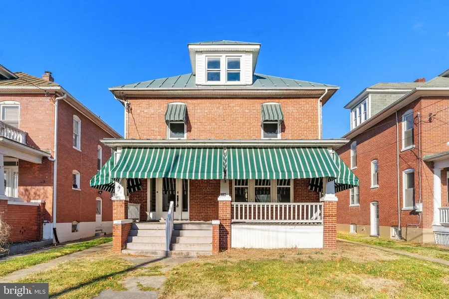 This delightful brick Colonial, perfectly situated in the heart of downtown Winchester, combines classic architecture with modern updates and an unbeatable location close to every downtown amenity, including restaurants, schools, shopping, parks, and major commuter routes. The home welcomes you with a large foyer featuring newly refinished hardwood floors that extend throughout the entire residence, complemented by fresh paint and an abundance of natural light. The remodeled kitchen is a highlight, boasting sleek white cabinetry and new stainless steel appliances, while a convenient half bath is also located on the main level. Upstairs, you will find four generously-sized bedrooms, all with hardwood floors, and an updated full bathroom featuring a custom-tiled, large walk-in shower with a waterfall shower head. A unique sunroom adjacent to one of the bedrooms offers a flexible space perfect for a sitting area, library, home office, or even an oversized walk-in closet. The property also includes a full unfinished basement & attic for storage, large covered front and back porches for outdoor enjoyment, a private yard, and valuable amenities like prime off-street parking and a detached garage/shed. Other updates include new plumbing, new HVAC (dual zone), new windows, electric and lighting. This is a rare opportunity to own a move-in ready home that perfectly balances downtown living with residential comfort and classic charm.