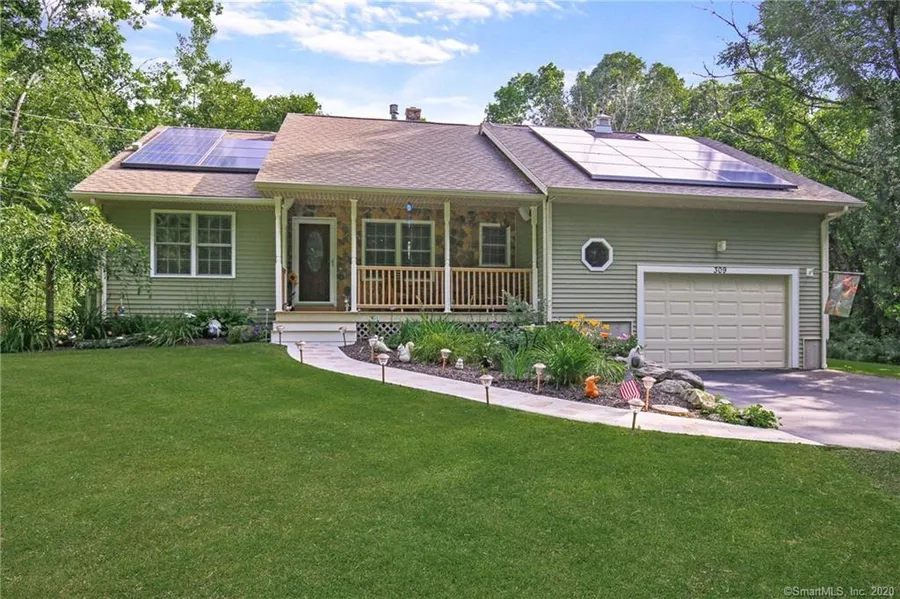 Welcome to the scenic, quiet corner of Ct! You will fall in love with this home and this area! Located on a winding country road, yet convenient to 395. You will find this pristine young ranch sited on a level grassy lot with mature and lush landscaping. Upon entering you will be greeted by a stunning kitchen/dining area complete with a see thru gas log fireplace, warm wood cabinetry, and new quartz countertops. The bright and airy family room opens to a stone paver patio thru a 4 panel slider, complete with grill and patio set to stay! Shed and glider to convey as well! The LR, back patio, and farmers porch are wired with a Bose Sound System as well as to the mounted TV, which will all remain! All you need to do is move in! Sumptuous Master bedroom with ensuite bath. Jetted tub and solid surface counters. Two more generous sized bedrooms with their own shared full bath. Huge full basement for tons of storage. Two Mitsubishi mini split units cool the house. There is s security system in place. Transferable, leased solar panels cut way back on the cost of electricity! This home has so much to offer! It has been maintained immaculately! Make your appointment before it's gone! Sale subject to seller finding suitable housing.