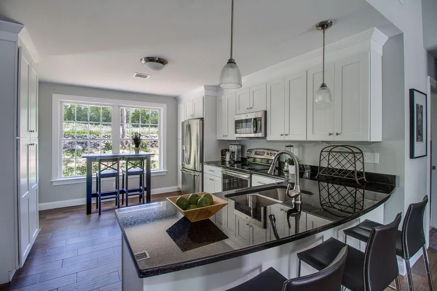 WELCOME TO NAHACO FARMS CONDOMINIUMS OF EASTFORD, CAREFREE COUNTRY LIVING AT IT'S BEST!Top quality new construction, 2 bedrooms 2 baths, living room, kitchen, den and laundry room; cathedral ceiling LR, tile floors with carpeted bedrooms, granite counter tops, top specs are standard with no extra charge including the choice of cherry cabinets, solid core raised panel doors, 5.5 inch trim, central air, master bath w/sit-in shower, 2nd bath with shower/tub, stainless steel GE appliances included, architectural shingles, covered front porch, sliders to rear patio, 1 car garage w/electric opener, concrete soundproofing wall between each unit where every unit is an "end unit". This private community abuts state forest, walk to trout fishing, many area amenities, lakes and parks, 17 minutes from the UCONN Storrs campus. According to mapquest located exactly 40 minutes from both Main St Hartfor...