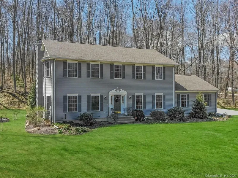 Welcome to this wonderful Colonial w/so much to offer. First floor has: 9 ft ceilings, 2 story foyer, kitchen with st.sl appliances including newer Samsung smart Frig/freezer, double oven w/convection, micro/convection oven, center island, updated quartz counter tops, subway tile backsplash, recessed lighting, pantry closet & beautiful updated ceramic tile flooring. It is open concept to the family room w/stone flr to ceiling fp w/pellet insert, slider to back deck & hwd flooring. The dining room is formal, offers a chandelier, hwd flooring & crown molding. There is a formal living room that could also be used as an office or den & a half bath for your convenience. Upstairs there are 4 spacious bedrooms including a master suite with full bath w/double sink vanity, soaking tub & separate shower room, walk in closet, c. fan & the wall mounted tv will stay! The 3 other bedrooms are light and bright, offer nice size closets- one other with a walk in. The home offers 2car gar., leaf filter gutters, generator hookup, Undergrd util.,pull down storage above the garage, 20x10 deck, bsmnt w/air filtration system-could be finished for even more space, freshly painted rooms & much more. The home sits in a stately position on its 2.59 ac expansive- lightly wooded and landscaped lot that offers shade in the summer and privacy! Large utility shed and plenty of parking! This home is set up great for Family & Friends & Entertaining! HOME IS LOCATED MINUTES FROM UCONN!!