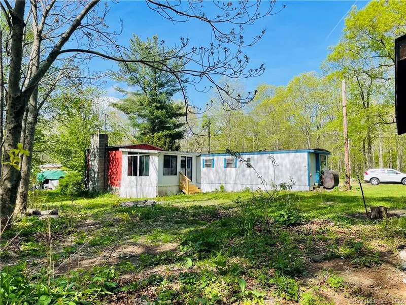 3.8 acres in lovely Killingly perfect for building your dream home and/or updating this mobile home! Vastly untouched lot! Newer 100 amp electric, septic pumped recently, no issues with well water - utilities are in and ready for your new build. 4 outbuildings behind mobile home have potential! This two bedroom, 1 bathroom mobile home has an added family room with fireplace and a pellet stove, and a glassy sunroom added on in back also. Newer electric hot water heater and newer 100 amp panel, laundry hookups. Immed occupancy.