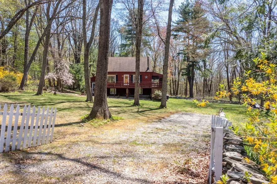 Tucked away in a peaceful country setting, this 3-bedroom, 2-bath Cape-style home is bursting with character. Step inside to find gorgeous hardwood floors, rustic exposed beams, and a striking spiral staircase that adds a touch of charm and elegance. The open and airy layout creates a cozy yet spacious feel, perfect for everyday living or weekend getaways. Nestled on 4 acres of beautiful land, there's plenty of room to roam, garden, or simply enjoy the tranquility of nature. This house is full of promise and ready for your personal touch. Whether you're looking for a serene full-time residence or a countryside escape, this gem has the bones to become your dream home. Selling as-is - come see this one of a kind. home.